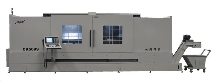 ■機床采用斜床身布局,主軸箱固定于床身左端,編程控制的副主軸置于床身右端,兩個刀架分別配置在床身兩側(cè)。